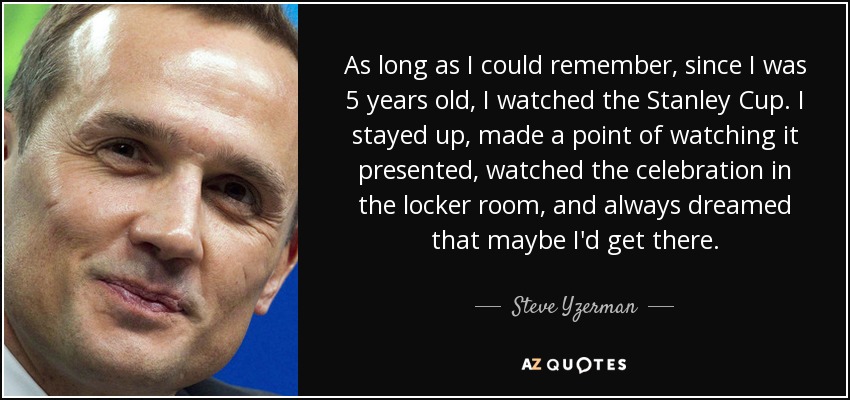 As long as I could remember, since I was 5 years old, I watched the Stanley Cup. I stayed up, made a point of watching it presented, watched the celebration in the locker room, and always dreamed that maybe I'd get there.