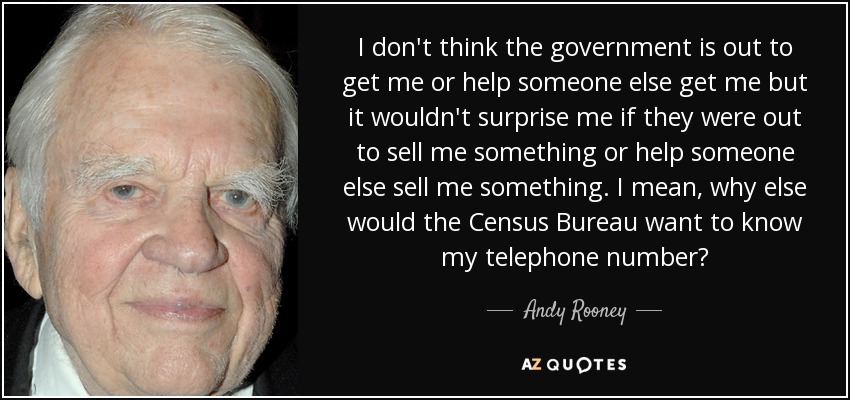 I don't think the government is out to get me or help someone else get me but it wouldn't surprise me if they were out to sell me something or help someone else sell me something. I mean, why else would the Census Bureau want to know my telephone number?