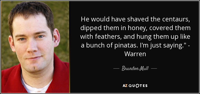He would have shaved the centaurs, dipped them in honey, covered them with feathers, and hung them up like a bunch of pinatas. I'm just saying." - Warren