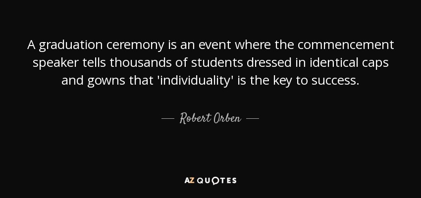 A graduation ceremony is an event where the commencement speaker tells thousands of students dressed in identical caps and gowns that 'individuality' is the key to success.