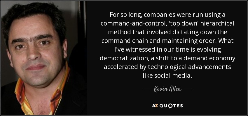 For so long, companies were run using a command-and-control, 'top down' hierarchical method that involved dictating down the command chain and maintaining order. What I've witnessed in our time is evolving democratization, a shift to a demand economy accelerated by technological advancements like social media.