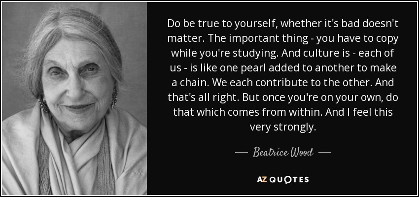 Do be true to yourself, whether it's bad doesn't matter. The important thing - you have to copy while you're studying. And culture is - each of us - is like one pearl added to another to make a chain. We each contribute to the other. And that's all right. But once you're on your own, do that which comes from within. And I feel this very strongly.