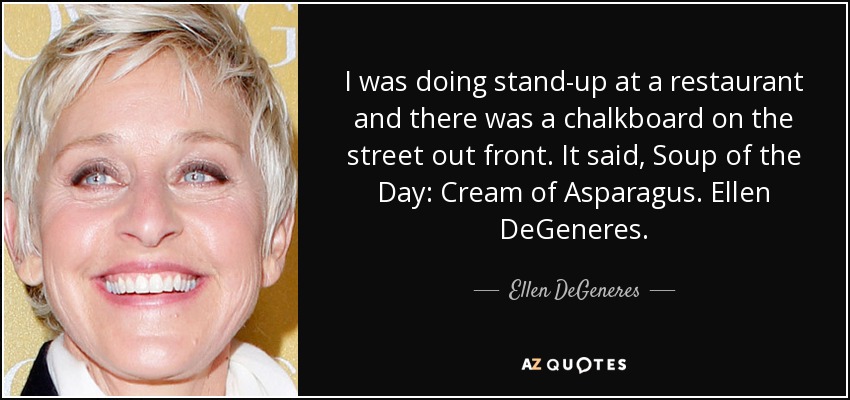 I was doing stand-up at a restaurant and there was a chalkboard on the street out front. It said, Soup of the Day: Cream of Asparagus. Ellen DeGeneres.