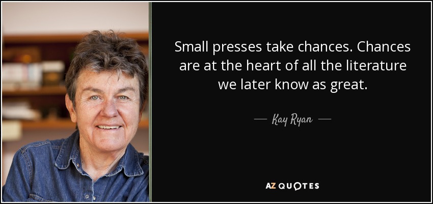 Small presses take chances. Chances are at the heart of all the literature we later know as great.