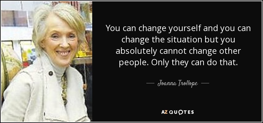 You can change yourself and you can change the situation but you absolutely cannot change other people. Only they can do that.