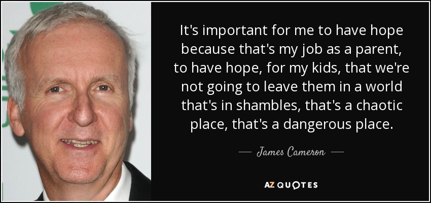 It's important for me to have hope because that's my job as a parent, to have hope, for my kids, that we're not going to leave them in a world that's in shambles, that's a chaotic place, that's a dangerous place.