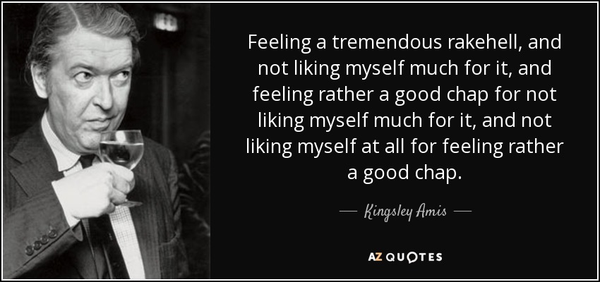 Feeling a tremendous rakehell, and not liking myself much for it, and feeling rather a good chap for not liking myself much for it, and not liking myself at all for feeling rather a good chap.