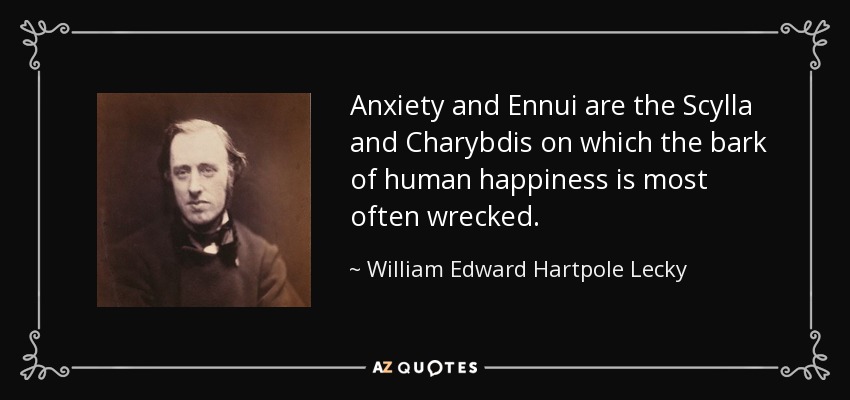 Anxiety and Ennui are the Scylla and Charybdis on which the bark of human happiness is most often wrecked.