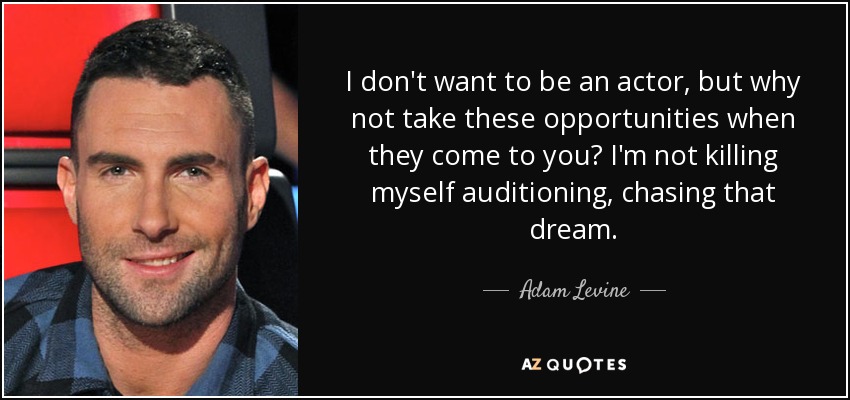 I don't want to be an actor, but why not take these opportunities when they come to you? I'm not killing myself auditioning, chasing that dream.
