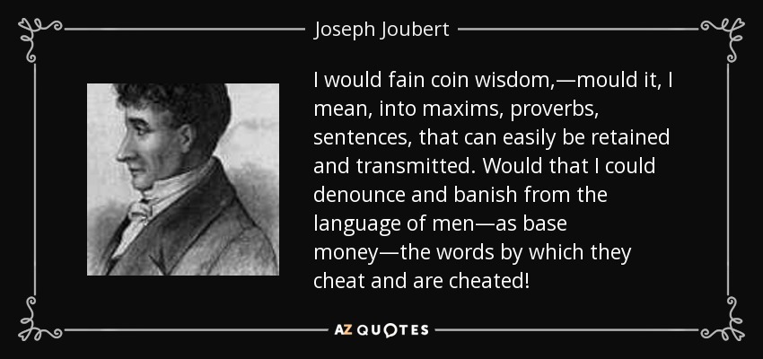I would fain coin wisdom,—mould it, I mean, into maxims, proverbs, sentences, that can easily be retained and transmitted. Would that I could denounce and banish from the language of men—as base money—the words by which they cheat and are cheated!