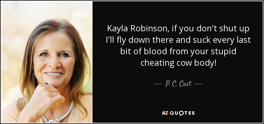 Kayla Robinson, if you don't shut up I'll fly down there and suck every last bit of blood from your stupid cheating cow body!
