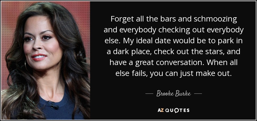 Forget all the bars and schmoozing and everybody checking out everybody else. My ideal date would be to park in a dark place, check out the stars, and have a great conversation. When all else fails, you can just make out.