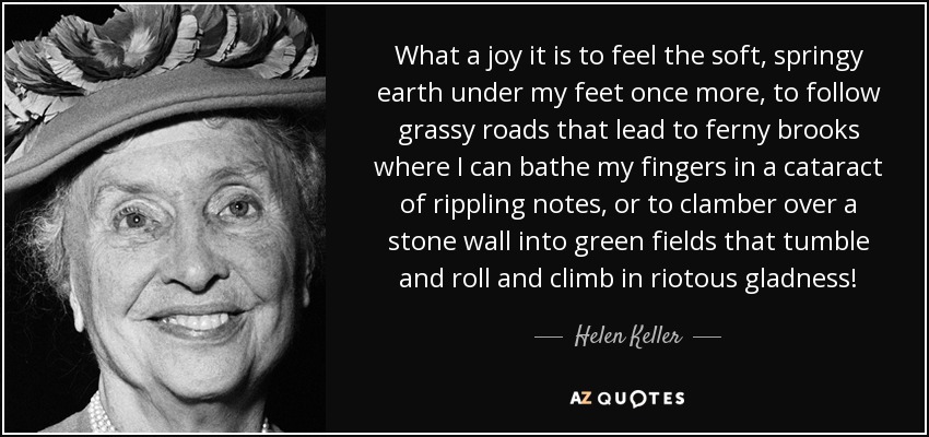 What a joy it is to feel the soft, springy earth under my feet once more, to follow grassy roads that lead to ferny brooks where I can bathe my fingers in a cataract of rippling notes, or to clamber over a stone wall into green fields that tumble and roll and climb in riotous gladness!