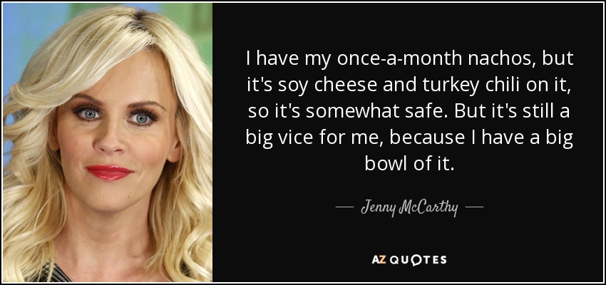 I have my once-a-month nachos, but it's soy cheese and turkey chili on it, so it's somewhat safe. But it's still a big vice for me, because I have a big bowl of it.