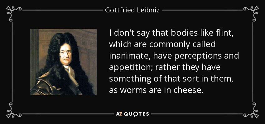 I don't say that bodies like flint, which are commonly called inanimate, have perceptions and appetition; rather they have something of that sort in them, as worms are in cheese.