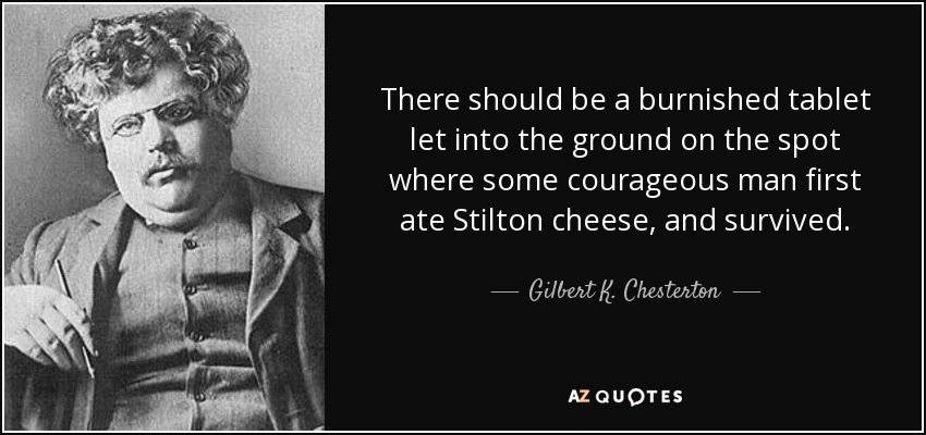 There should be a burnished tablet let into the ground on the spot where some courageous man first ate Stilton cheese, and survived.