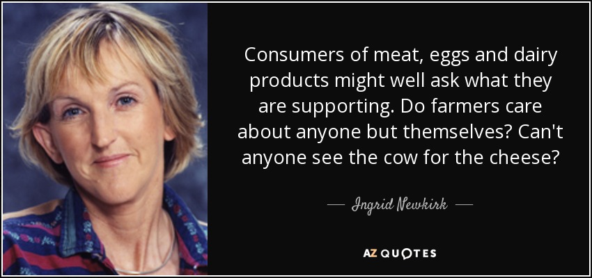 Consumers of meat, eggs and dairy products might well ask what they are supporting. Do farmers care about anyone but themselves? Can't anyone see the cow for the cheese?
