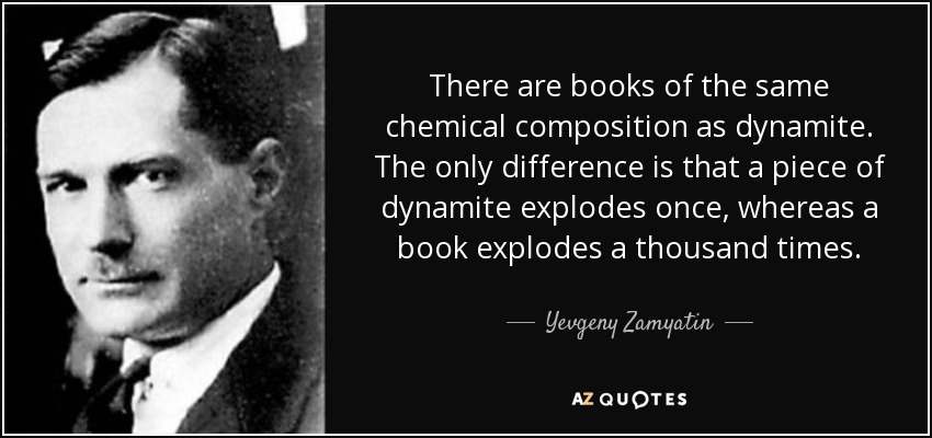 There are books of the same chemical composition as dynamite. The only difference is that a piece of dynamite explodes once, whereas a book explodes a thousand times.