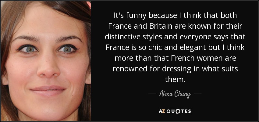 It's funny because I think that both France and Britain are known for their distinctive styles and everyone says that France is so chic and elegant but I think more than that French women are renowned for dressing in what suits them.