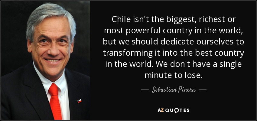 Chile isn't the biggest, richest or most powerful country in the world, but we should dedicate ourselves to transforming it into the best country in the world. We don't have a single minute to lose.