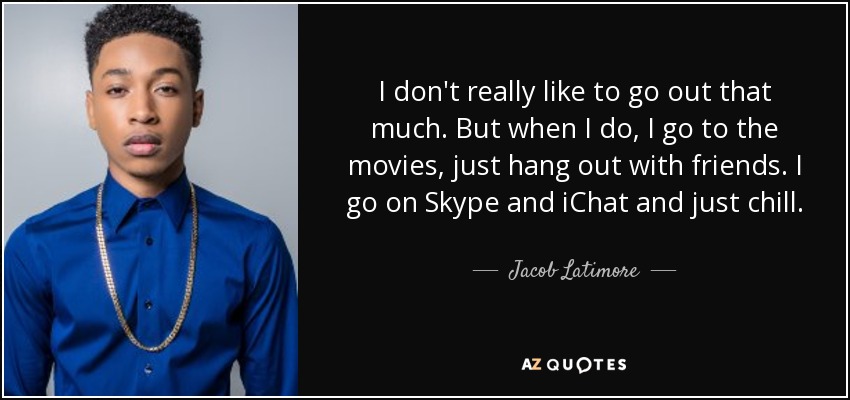 I don't really like to go out that much. But when I do, I go to the movies, just hang out with friends. I go on Skype and iChat and just chill.