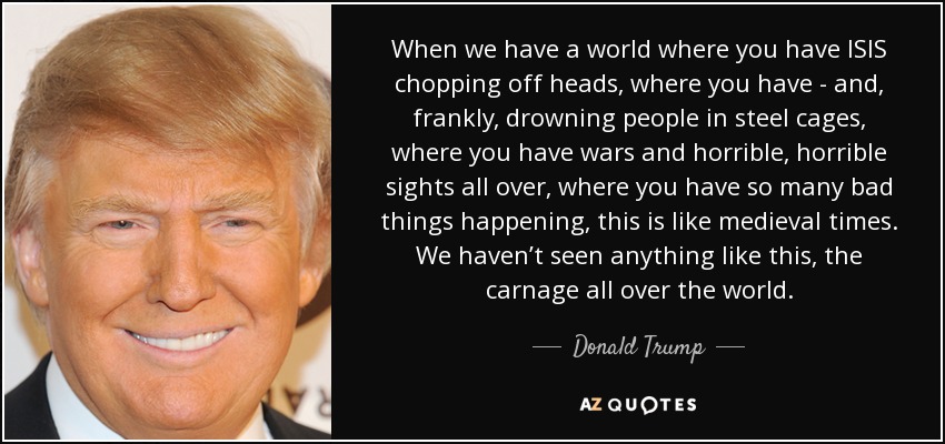 When we have a world where you have ISIS chopping off heads, where you have - and, frankly, drowning people in steel cages, where you have wars and horrible, horrible sights all over, where you have so many bad things happening, this is like medieval times. We haven’t seen anything like this, the carnage all over the world.