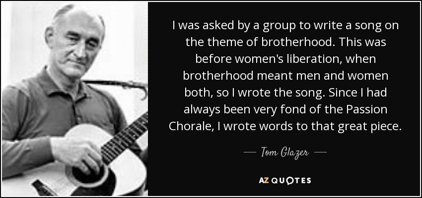 I was asked by a group to write a song on the theme of brotherhood. This was before women's liberation, when brotherhood meant men and women both, so I wrote the song. Since I had always been very fond of the Passion Chorale, I wrote words to that great piece.