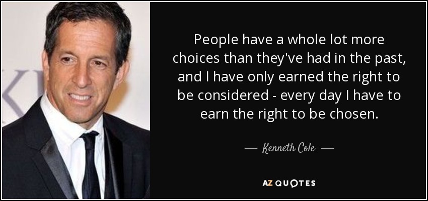 People have a whole lot more choices than they've had in the past, and I have only earned the right to be considered - every day I have to earn the right to be chosen.