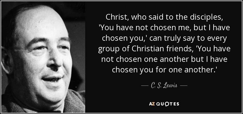 Christ, who said to the disciples, 'You have not chosen me, but I have chosen you,' can truly say to every group of Christian friends, 'You have not chosen one another but I have chosen you for one another.'