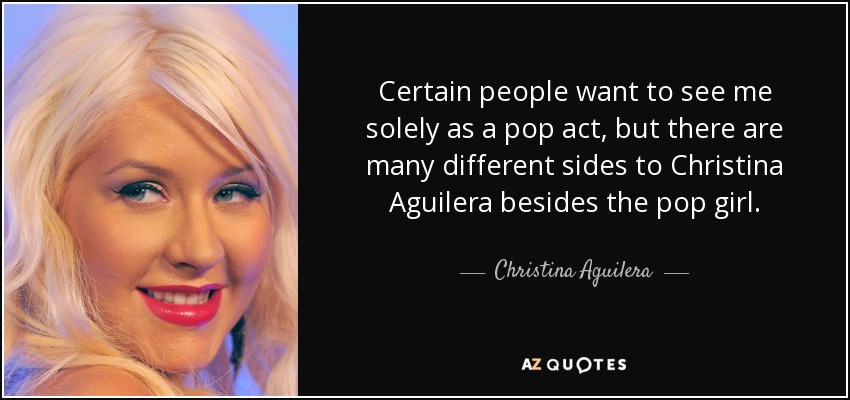 Certain people want to see me solely as a pop act, but there are many different sides to Christina Aguilera besides the pop girl.