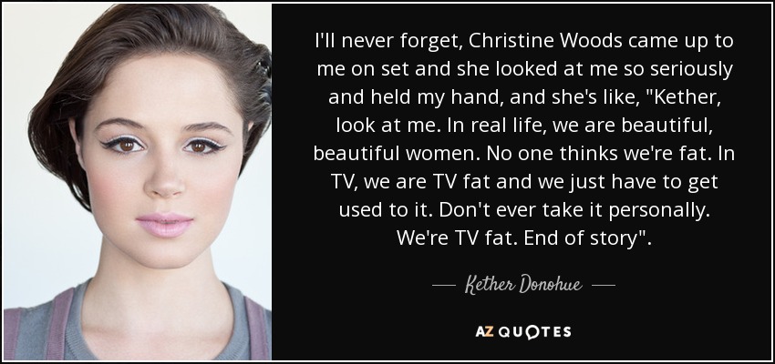 I'll never forget, Christine Woods came up to me on set and she looked at me so seriously and held my hand, and she's like, "Kether, look at me. In real life, we are beautiful, beautiful women. No one thinks we're fat. In TV, we are TV fat and we just have to get used to it. Don't ever take it personally. We're TV fat. End of story".