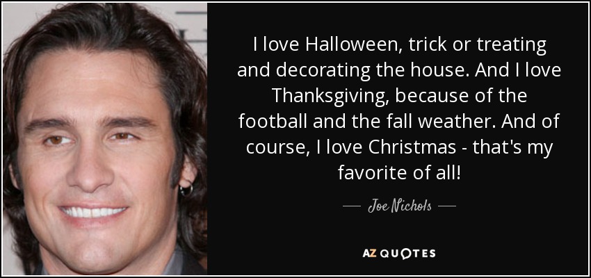I love Halloween, trick or treating and decorating the house. And I love Thanksgiving, because of the football and the fall weather. And of course, I love Christmas - that's my favorite of all!