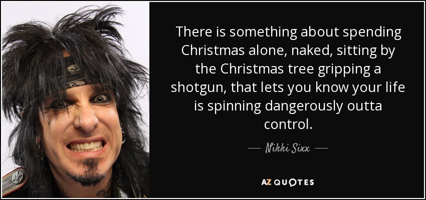 There is something about spending Christmas alone, naked, sitting by the Christmas tree gripping a shotgun, that lets you know your life is spinning dangerously outta control.
