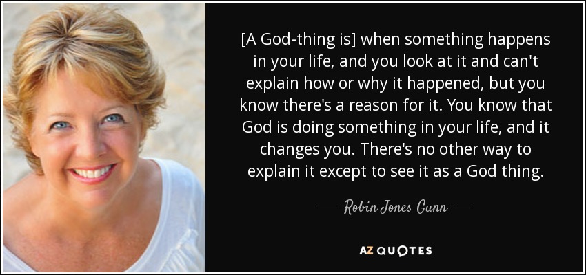 [A God-thing is] when something happens in your life, and you look at it and can't explain how or why it happened, but you know there's a reason for it. You know that God is doing something in your life, and it changes you. There's no other way to explain it except to see it as a God thing.