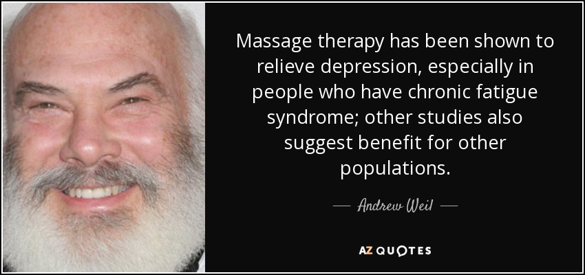 Massage therapy has been shown to relieve depression, especially in people who have chronic fatigue syndrome; other studies also suggest benefit for other populations.