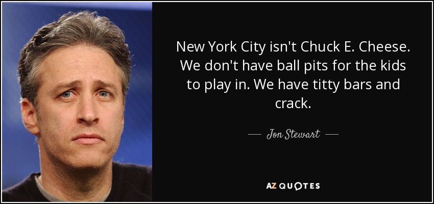 New York City isn't Chuck E. Cheese. We don't have ball pits for the kids to play in. We have titty bars and crack.