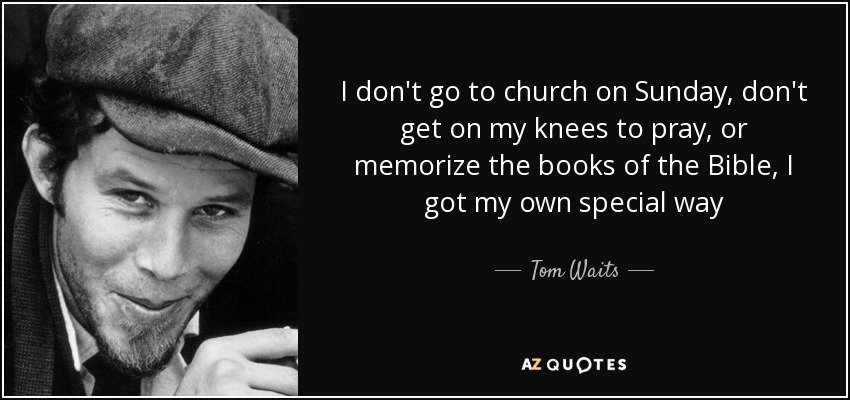 I don't go to church on Sunday, don't get on my knees to pray, or memorize the books of the Bible, I got my own special way