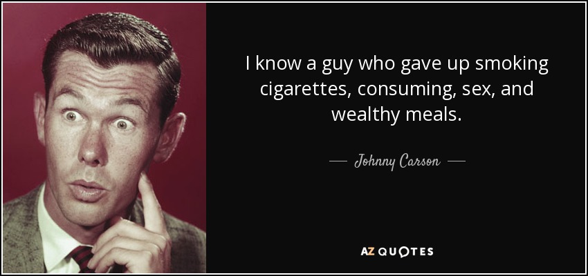 I know a guy who gave up smoking cigarettes, consuming, sex, and wealthy meals.