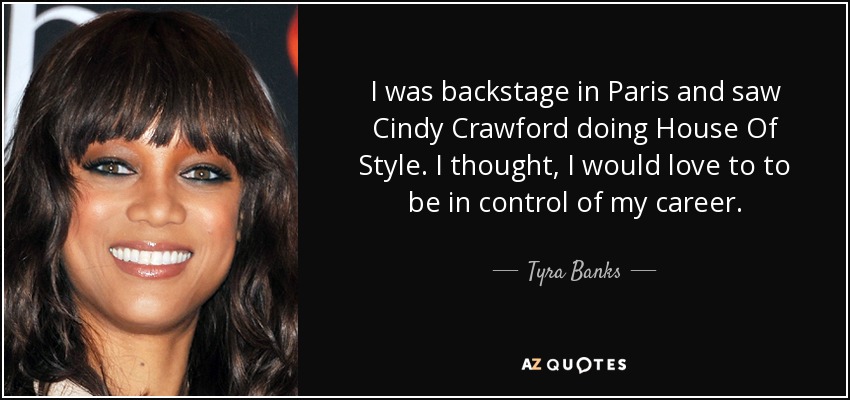 I was backstage in Paris and saw Cindy Crawford doing House Of Style. I thought, I would love to to be in control of my career.