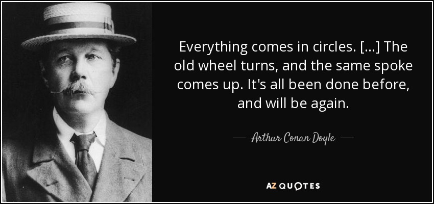 Everything comes in circles. [...] The old wheel turns, and the same spoke comes up. It's all been done before, and will be again.
