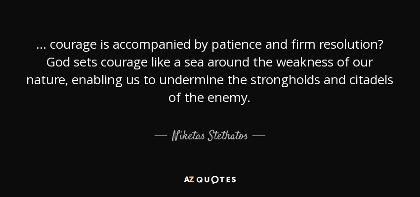 ... courage is accompanied by patience and firm resolution? God sets courage like a sea around the weakness of our nature, enabling us to undermine the strongholds and citadels of the enemy.