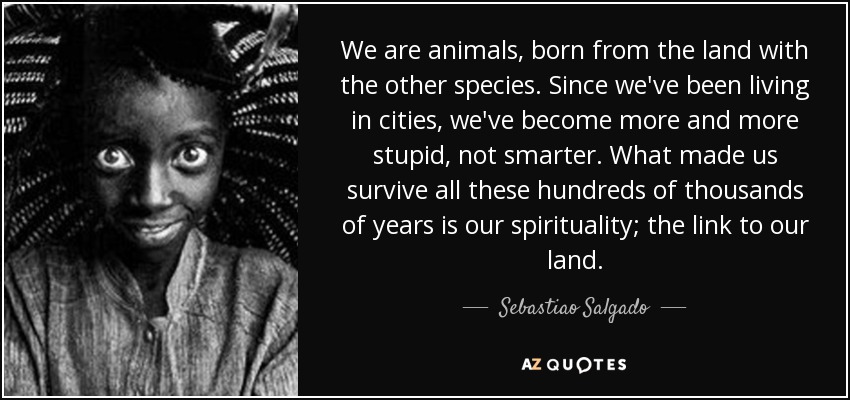 We are animals, born from the land with the other species. Since we've been living in cities, we've become more and more stupid, not smarter. What made us survive all these hundreds of thousands of years is our spirituality; the link to our land.