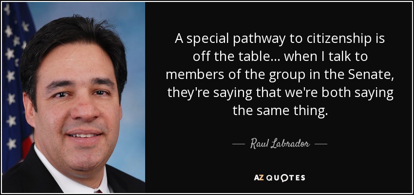 A special pathway to citizenship is off the table... when I talk to members of the group in the Senate, they're saying that we're both saying the same thing.
