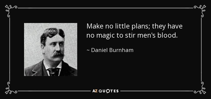 Make big plans; aim high in hope and work, remembering that a noble, logical diagram once recorded will not die.