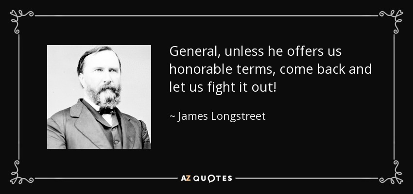 General, unless he offers us honorable terms, come back and let us fight it out!