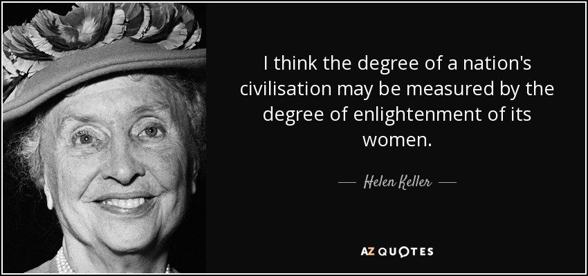 I think the degree of a nation's civilisation may be measured by the degree of enlightenment of its women.