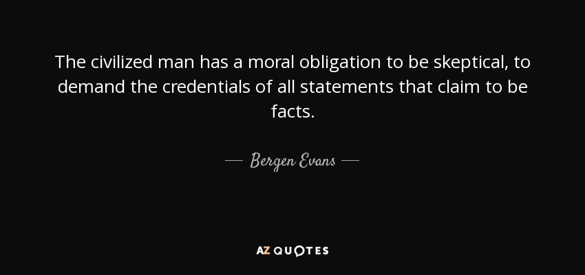The civilized man has a moral obligation to be skeptical, to demand the credentials of all statements that claim to be facts.