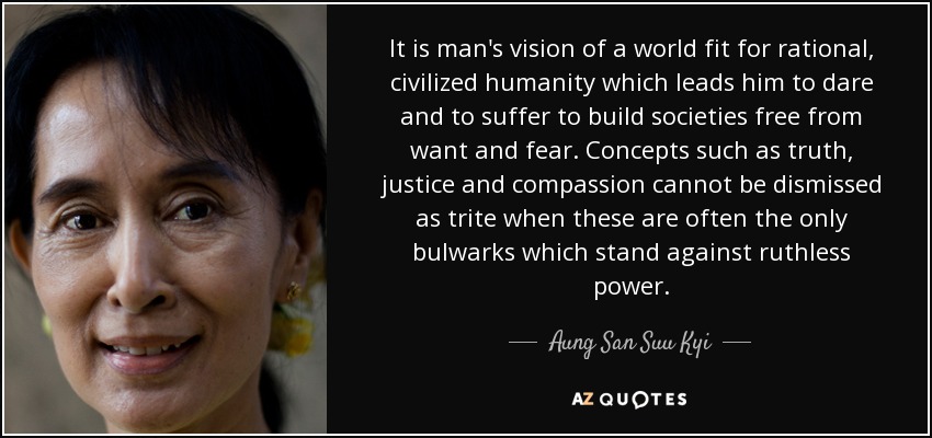 It is man's vision of a world fit for rational, civilized humanity which leads him to dare and to suffer to build societies free from want and fear. Concepts such as truth, justice and compassion cannot be dismissed as trite when these are often the only bulwarks which stand against ruthless power.
