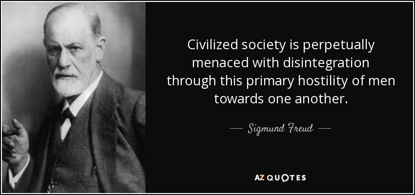 Civilized society is perpetually menaced with disintegration through this primary hostility of men towards one another.
