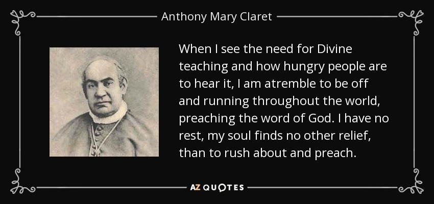 When I see the need for Divine teaching and how hungry people are to hear it, I am atremble to be off and running throughout the world, preaching the word of God. I have no rest, my soul finds no other relief, than to rush about and preach.